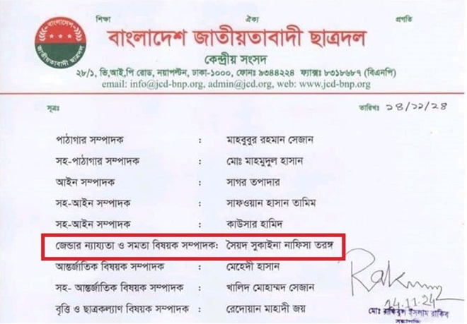 বিএনপির LGBTQ+ তথা সমকামী  সাপোর্টের বিষয়ে সন্ধিগ্ধ করে তোলার আরেকটি কারণ হচ্ছে ছাত্রদলের কমিটিতে জেন্ডার নায্যতা ও সমতা বিষয়ক সম্পাদকের পদ থাকা, কেননা জেন্ডার নায্যতা ও সমতা বলতে এখন আর কেবল নারী-পুরুষের সমতাকে বুঝানো হয় না বরং ট্রান্সজেন্ডার তথা সমকামী গোষ্ঠীকেও সমতার আওতাভুক্ত করা হয়ে থাকে।