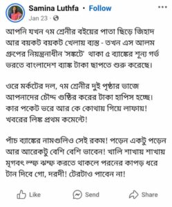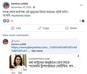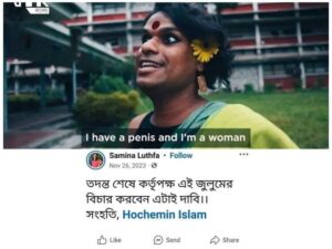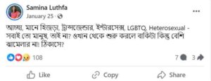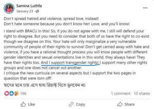 নিচের ছবিতে সামিনা লুৎফাকে এলজিবিটি প্রোমোটকারী মেইল অ্যাঞ্জেলের সাথে দেখা যাচ্ছে।