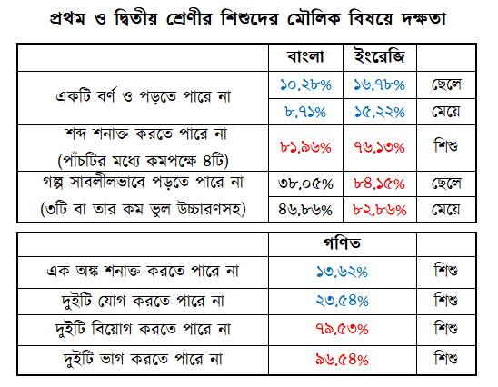[সূত্রঃ বাংলা, ইংরেজি, গণিতে পিছিয়ে প্রাথমিকের ৮০ শতাংশ শিশু: জরিপ]